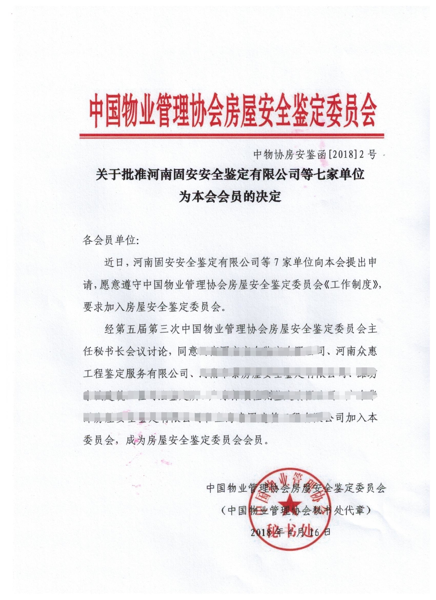 河南眾惠工程鑒定服務(wù)有限公司成為中國房屋安全鑒定委員會會員
