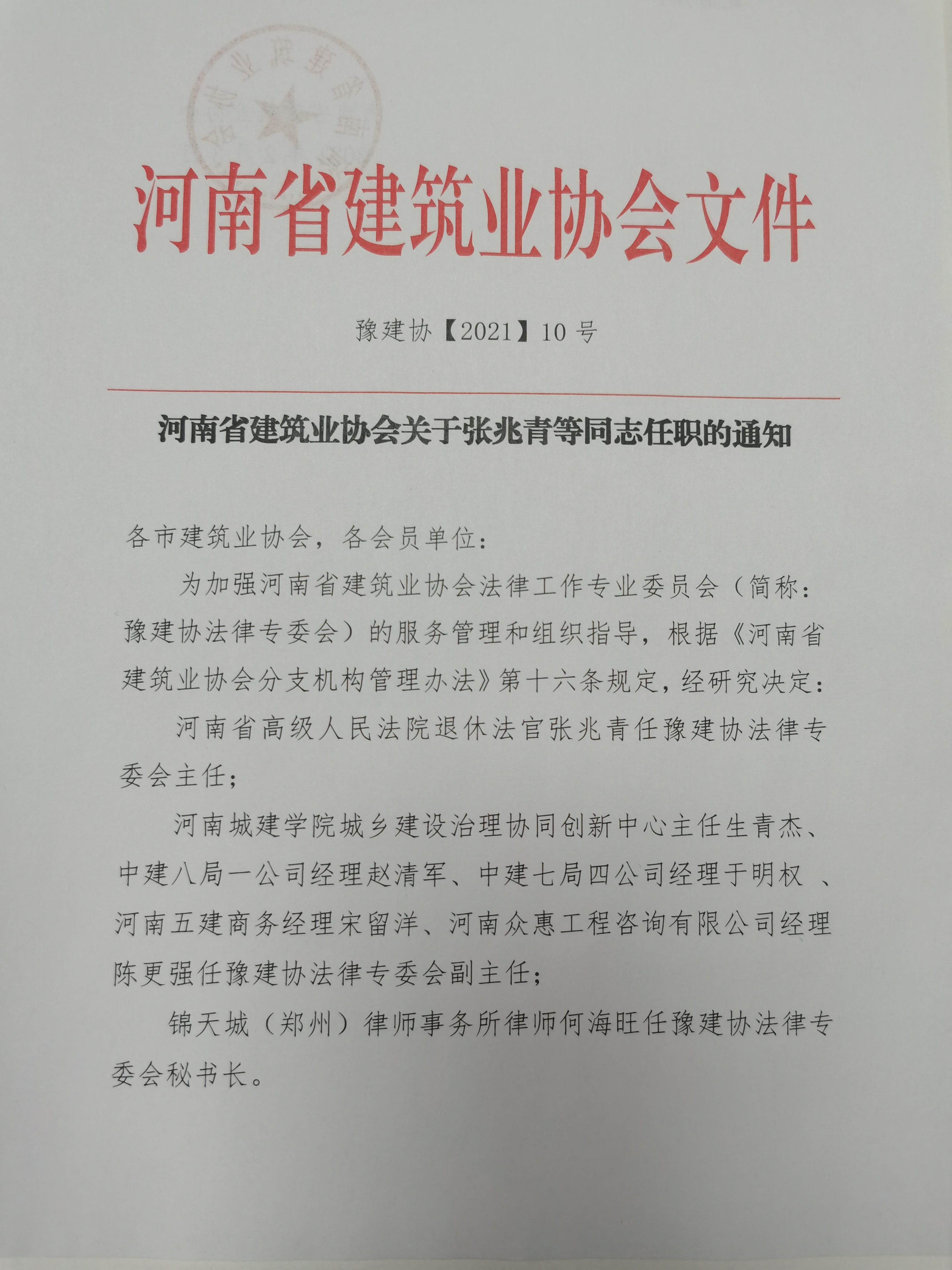 熱烈祝賀我公司總經(jīng)理陳更強同志榮任豫建協(xié)法律專委會副主任